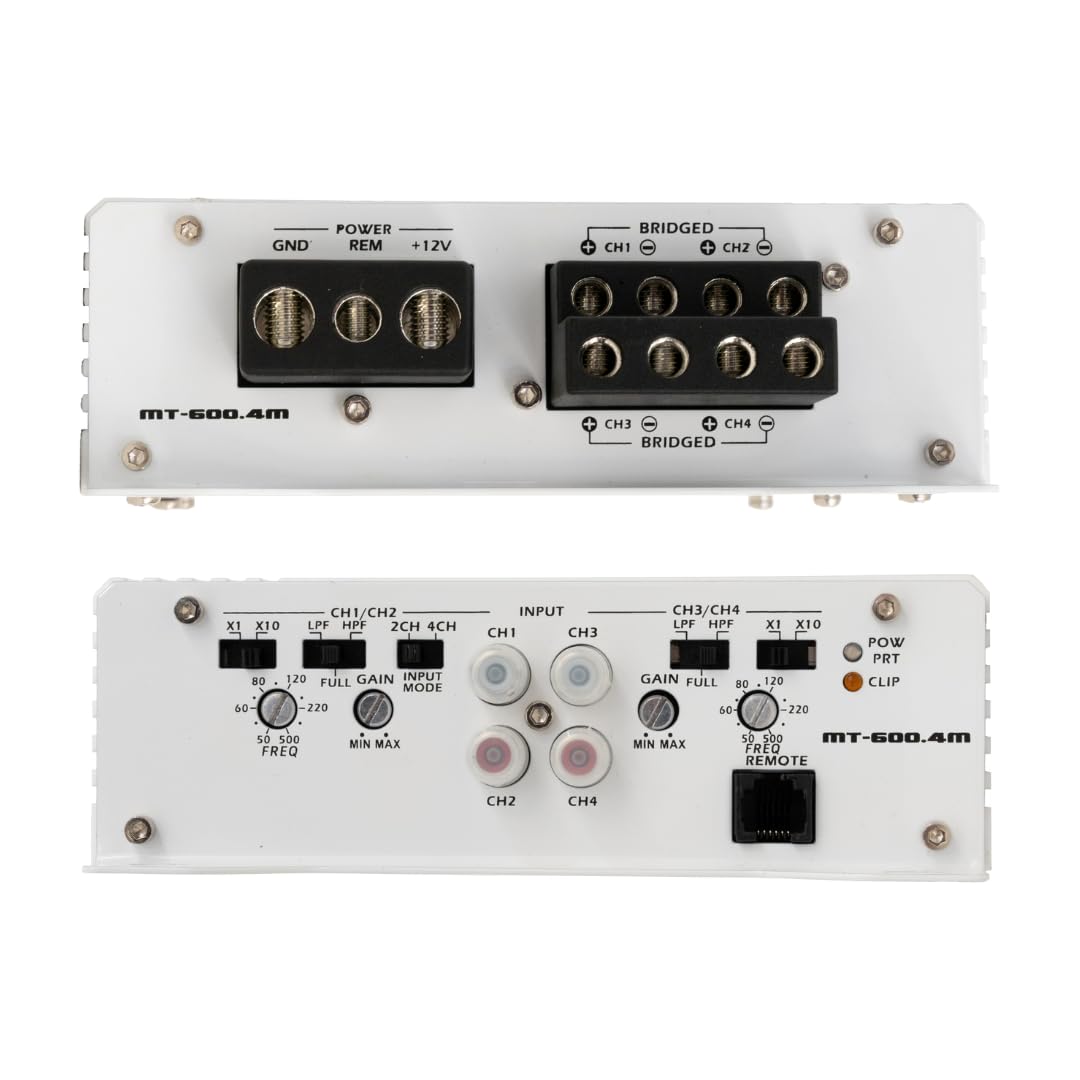 Stinger Audio MT-600.4M 1000 Watt RMS 4-Channel Compact Marine Audio Amplifier, Class D, Hexfet Mosfet, Water-Resistant, Crossover High-Pass/Low-Pass Filters